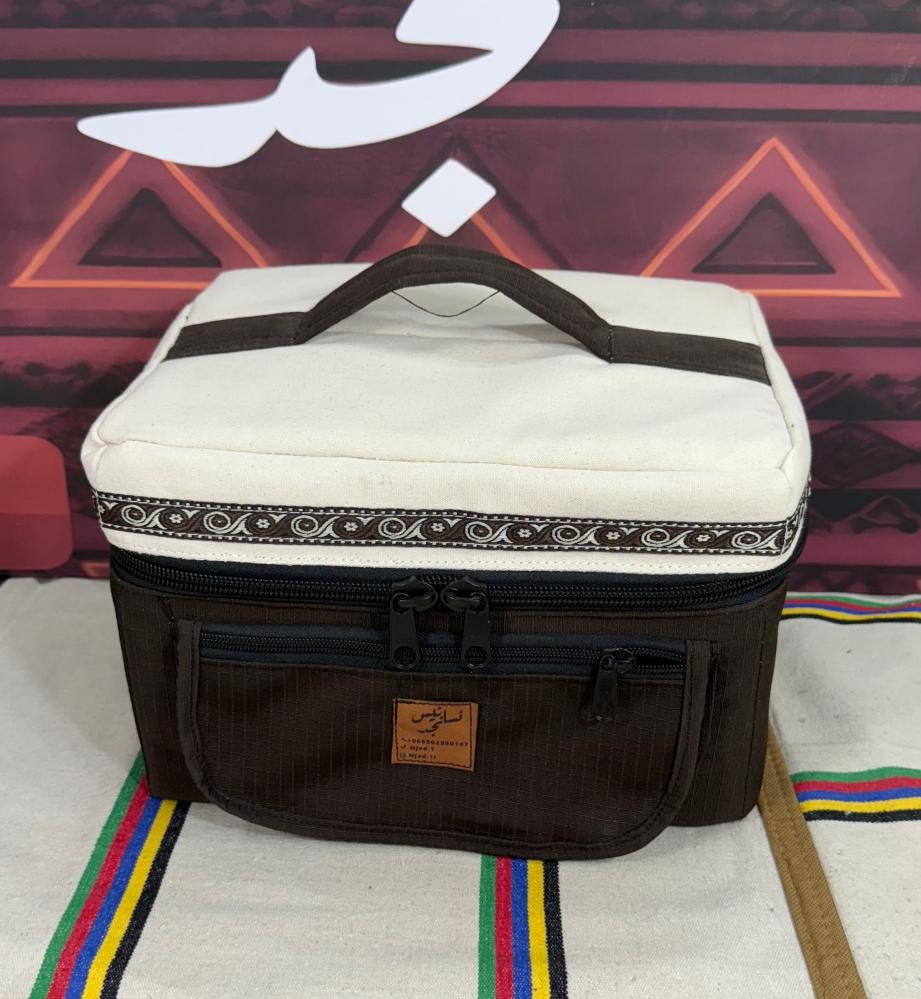 الشنطة حسب الاختيار مكونات الشنطة ( بريق ابو تاج تعديل مصنع مقاس 10 ,, علبتين بلاستك ،،، مكيال ،، دبة 230 قرام مع تلبيسه جلد ،، موقد ،، جراب كاسات مع كاسات اندنوسية ،، بيز )